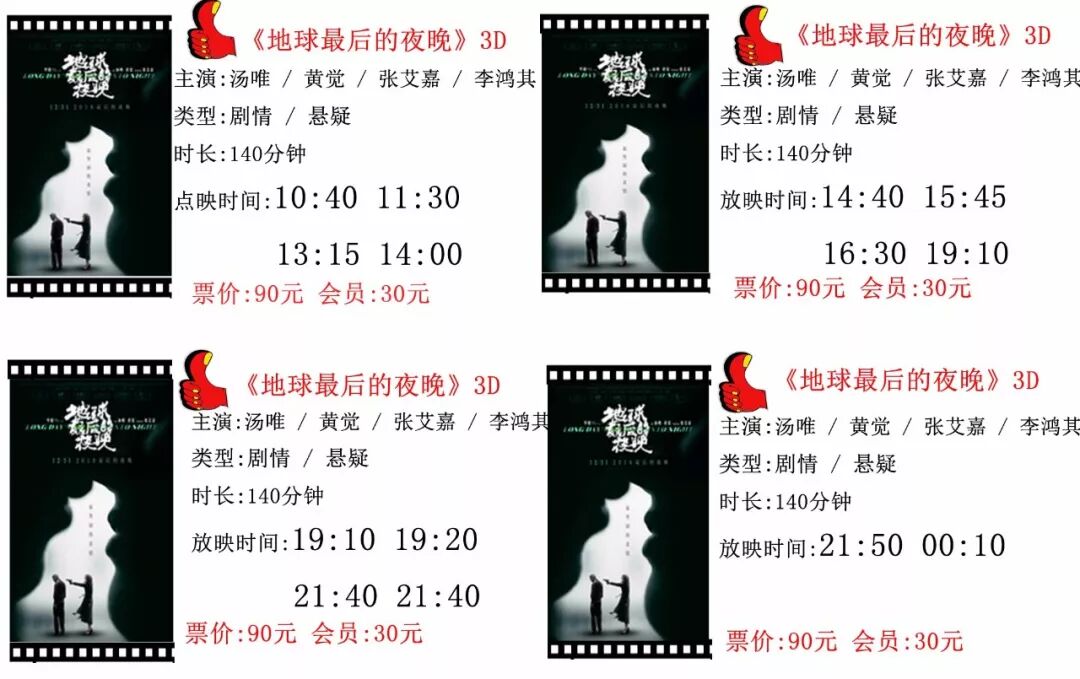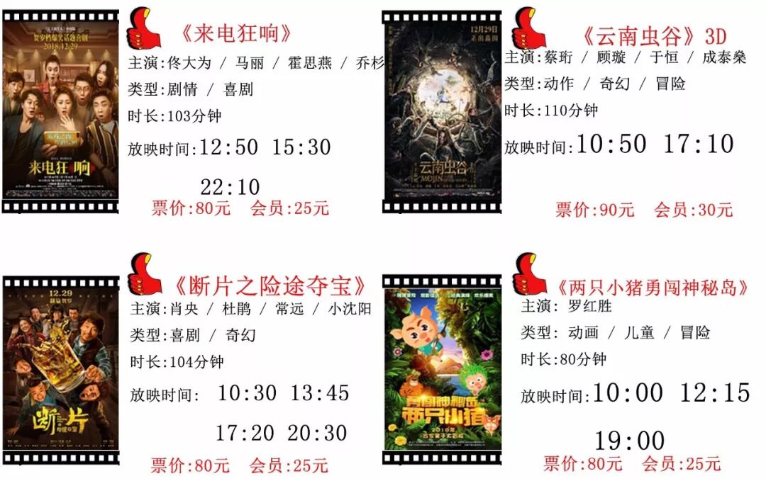 友谊联都影城2018年12月31日排片表