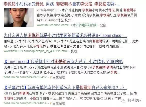 网上关于郭敬明不待见李悦铭的帖子一把抓。