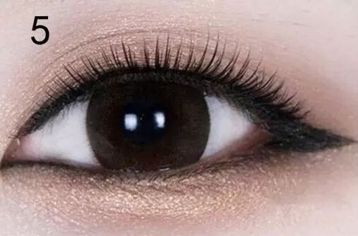 Step4:用黑色眼线笔勾勒出上下眼线,并在眼尾处略微延长,注意眼线不能画太粗,否则会显得眼神很凶,另外记得要将眼尾三角空白处填满。