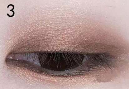 Step3:眼影刷蘸取棕色眼影,在双眼皮褶皱内小范围晕染,并压深眼尾,让双眼更显深邃。