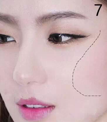 Step7:最后用大号粉刷蘸取少量粉色腮红,沿着苹果肌斜刷一层淡淡腮红,打造出自然的好气色。