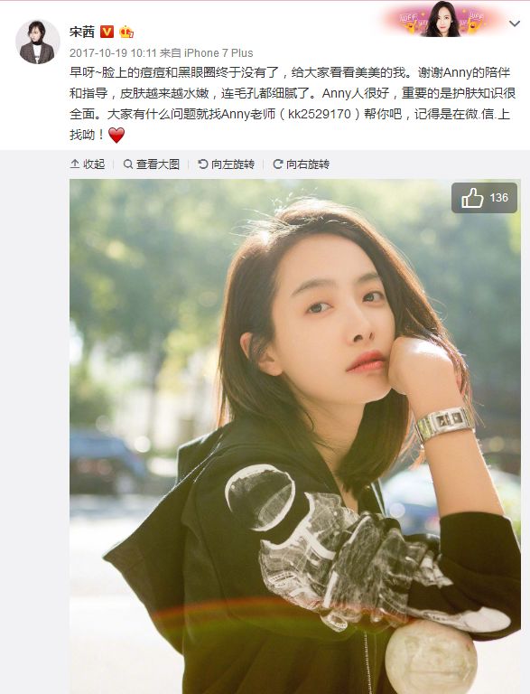 不过不得不说,宋茜的颜值是没话说的,肤白貌美,特别是那保养得吹弹可破的肌肤,真的让人好羡慕,就像下面这张图片一样!