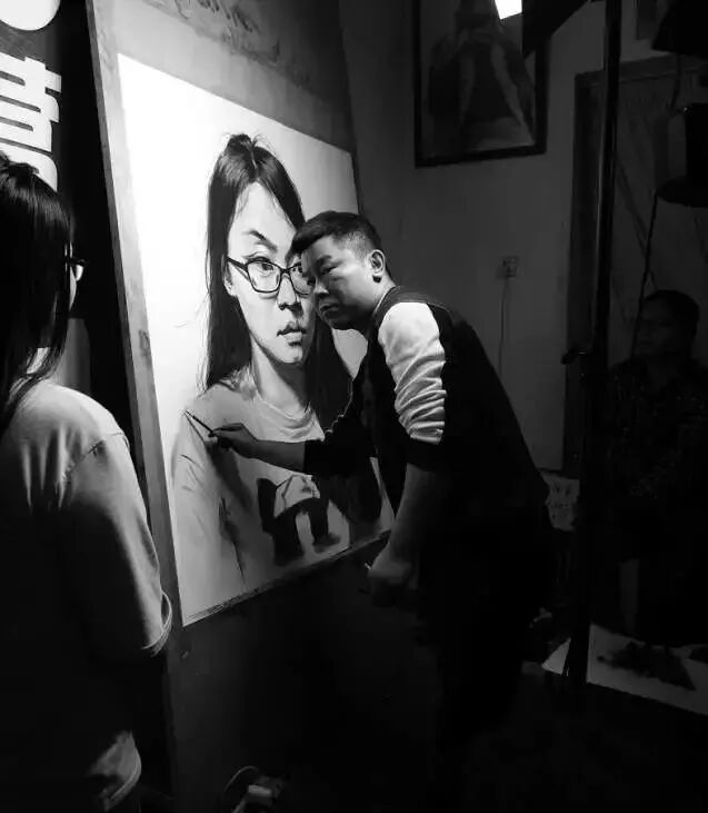 刘斌在画陆毅时,