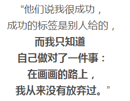 “如果画画会让你觉得很艰难,坚持不了,那就放弃吧。但是放弃了就不要抱怨!任何事都是这样,不止是绘画。要得到必须要付出,付出了还得学会坚持。