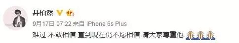井柏然:难过.不敢相信.直到现在仍不愿相信.请大家尊重他.