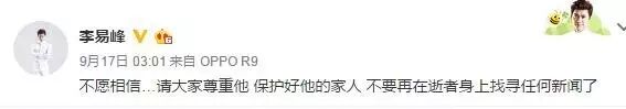李易峰:不愿相信…请大家尊重他 保护好他的家人 不要再在逝者身上找寻任何新闻了
