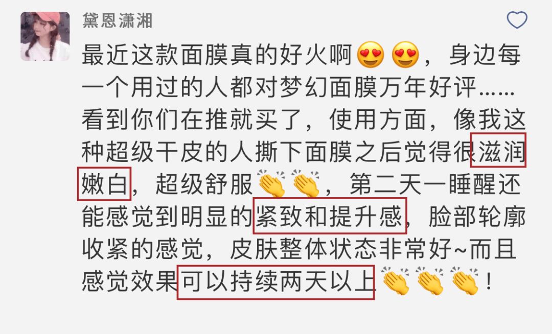我用过几十款面膜,不得不说,这款梦幻面膜无论是使用感,还是效果,都丝毫不输¥200/片的贵妇面膜。