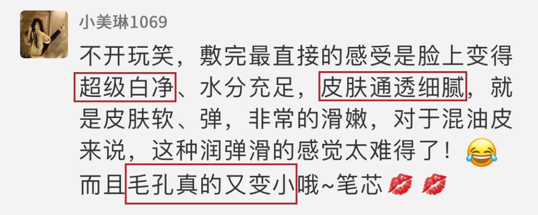 用过的美妆达人们一致表示:效果堪比水光针!肌肤瞬间水润亮白,轻松拥有完美的紧致轮廓。