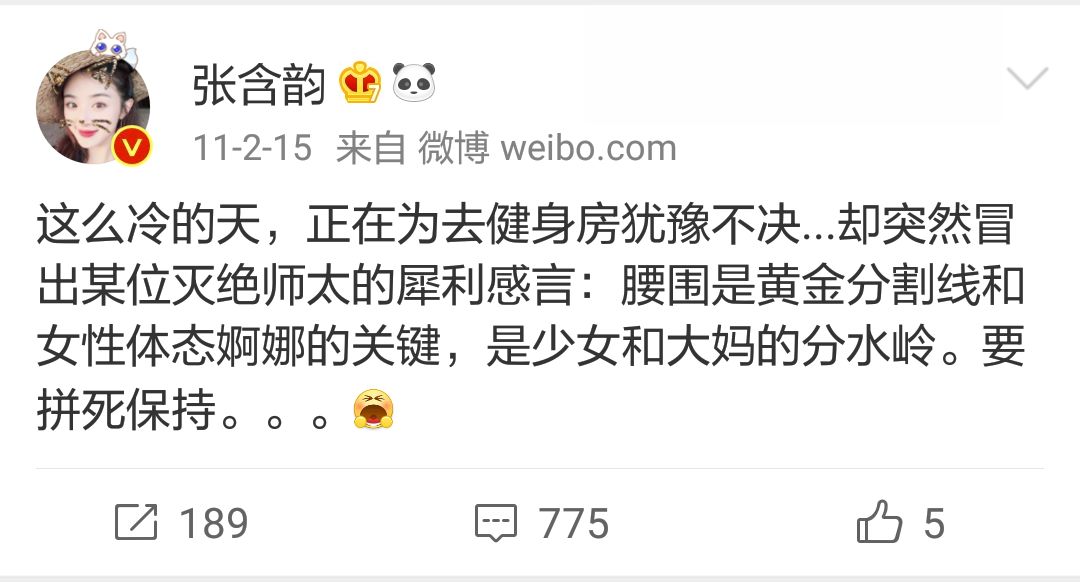 瘦肉君今天刷微博的时候,偶然看到了张含韵的一张照片。