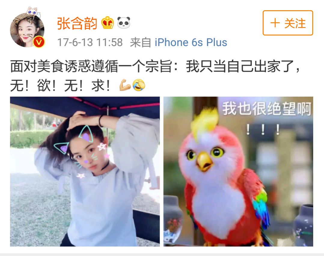 减肥之路漫长而艰辛,张含韵也学会了苦中作乐,看这表情包用的,贼溜!
