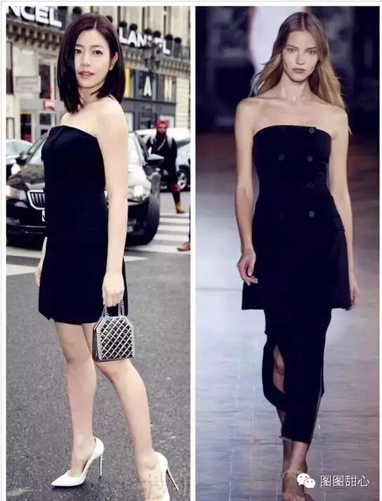这不刚结束的Stella McCartney 2016 FW Show场外,“包子脸”女神 陈妍希一身Stella McCartney 2016 SS 黑色抹胸短裙亮相。