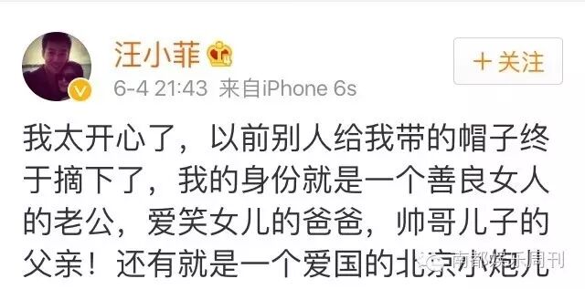 对于被挤出“京城四少”,汪小菲4日深夜发文称:“我太开心了,以前别人给我戴的帽子终于摘下了,我的身份就是一个善良女人的老公,爱笑女儿的爸爸,帅哥儿子的父亲!还有就是一个爱国的北京小炮儿!”看来,汪小菲也对“京城四少”这一称呼困扰了不少时间。