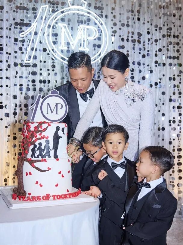 今次二人大搞锡婚P,两人全程牵手对视,笑容洋溢,更拖埋三个仔仔一同现身,派对以「10MP」为主题(两人英文名首字母组合),呼应2015年婚礼嘅「MP」标志,极尽有心思。当中胡杏儿终于舍得晒出当晚靓相,留言:「3650天过得太快了,谢谢所有我们最好的朋友和家人和我们一起庆祝,锡婚快乐! ! ?❤️??」有去现场嘅马赛亦有晒出多张合照:「转瞬间,十年锡婚❤️祝您永远幸福❤️胡杏儿 见到朋友们都各自幸福安康 感恩☺️祝福??」