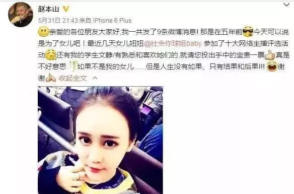 连6年没发过微博的本山大叔,也亲自在微博上为了女儿的直播事业拉票。看来大叔对于自己女儿能被网友喜欢,还是很骄傲的呢!