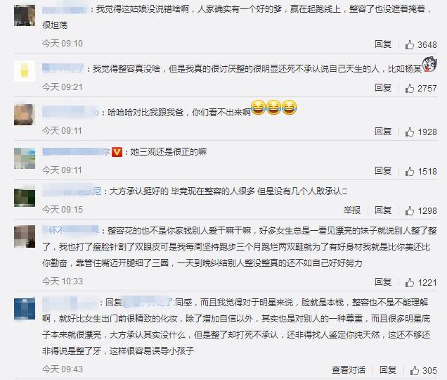 吃瓜群众对于球球此次“自曝整容”事件的看法,纷纷表示“这是每个人的选择”、“大方承认挺好的”、“三观正!”。