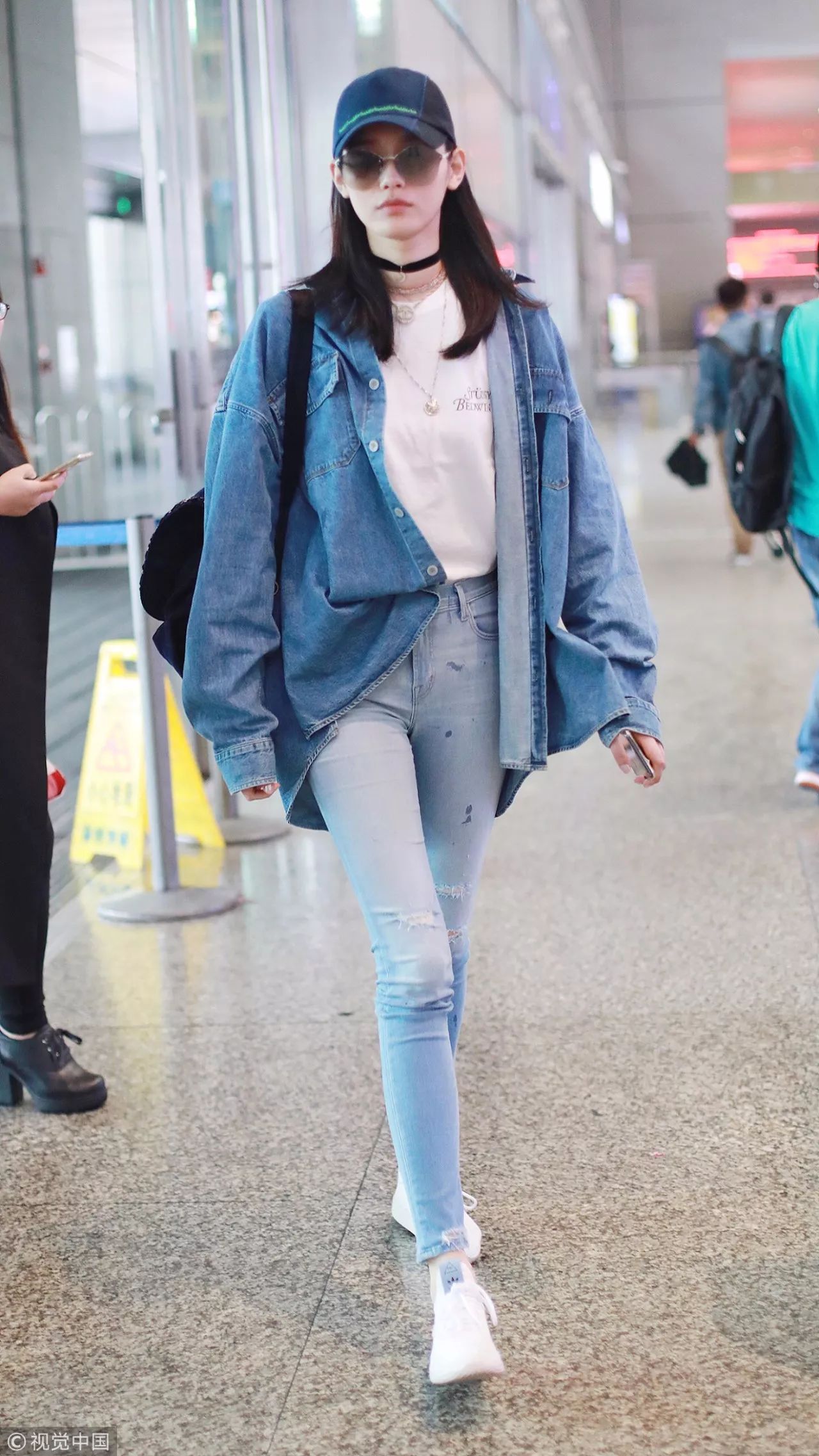 ▲oversize牛仔衣搭配的依然是白T+牛仔裤,对于超模来说,驾驭denim on denim完全不在话下。