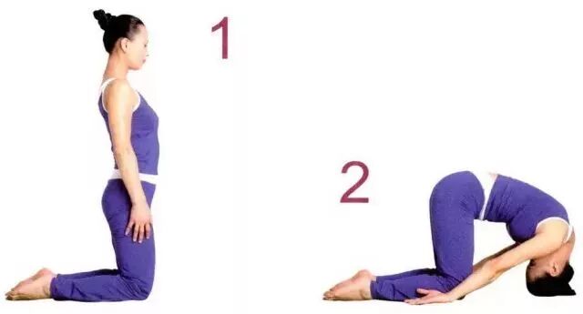 3.把颈项和胸部升起,从而使背部成拱形,并把头放在地上。平静地呼吸,保持此姿势1分钟。然后吸气,把背与颈部滑放在地上,最后回到英雄式。