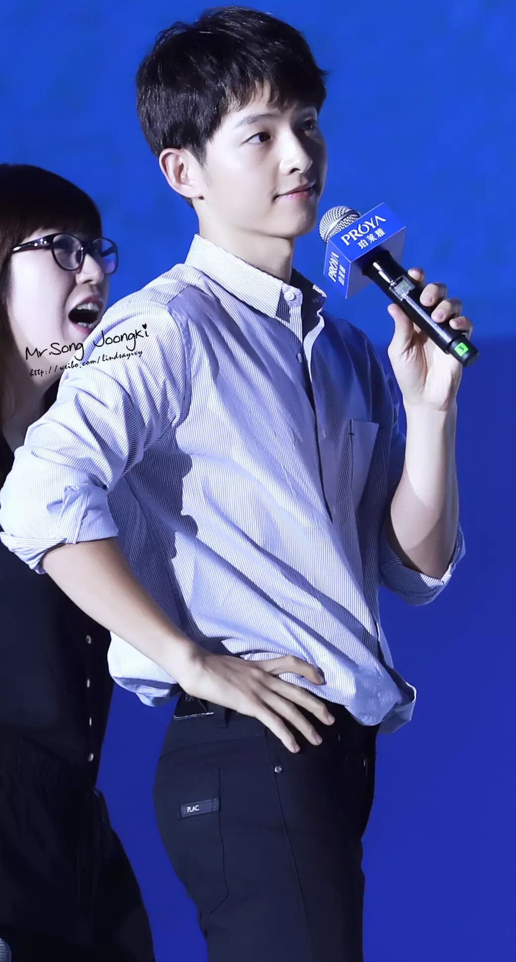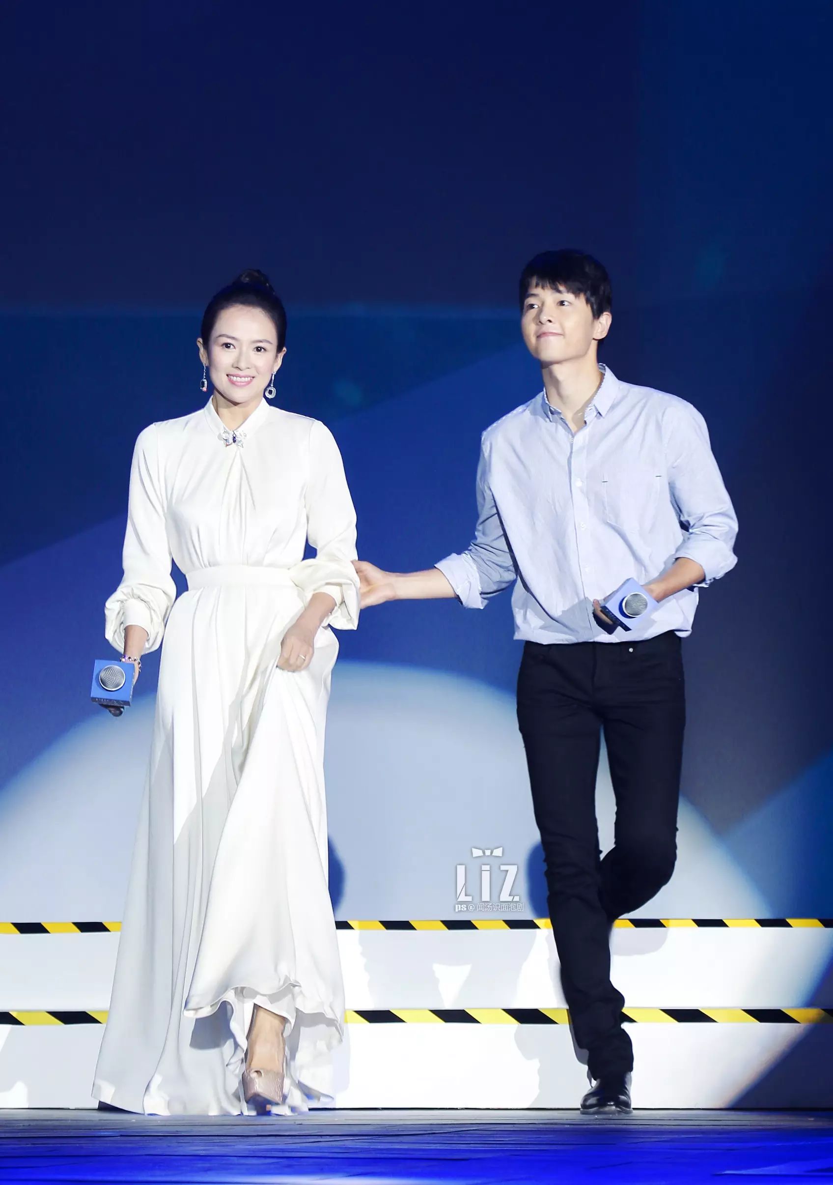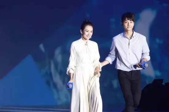 她上台时,欧巴很绅士地牵她走向舞台
