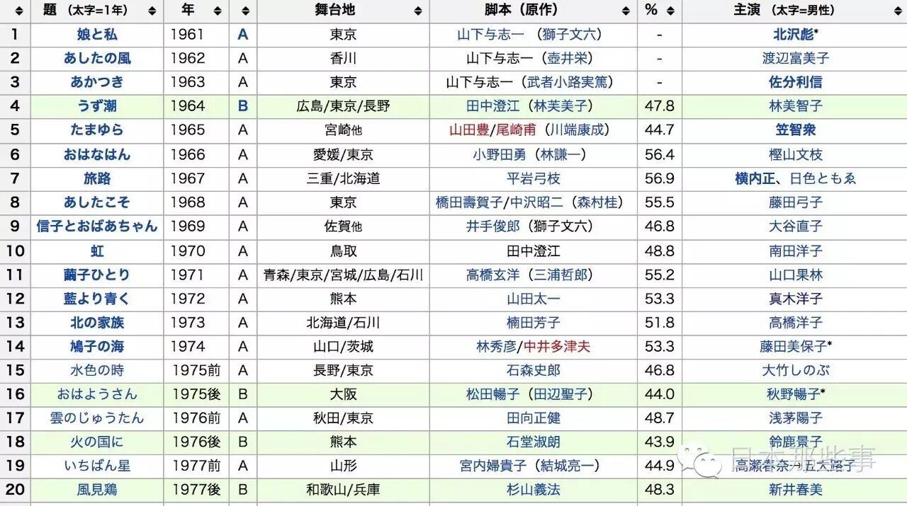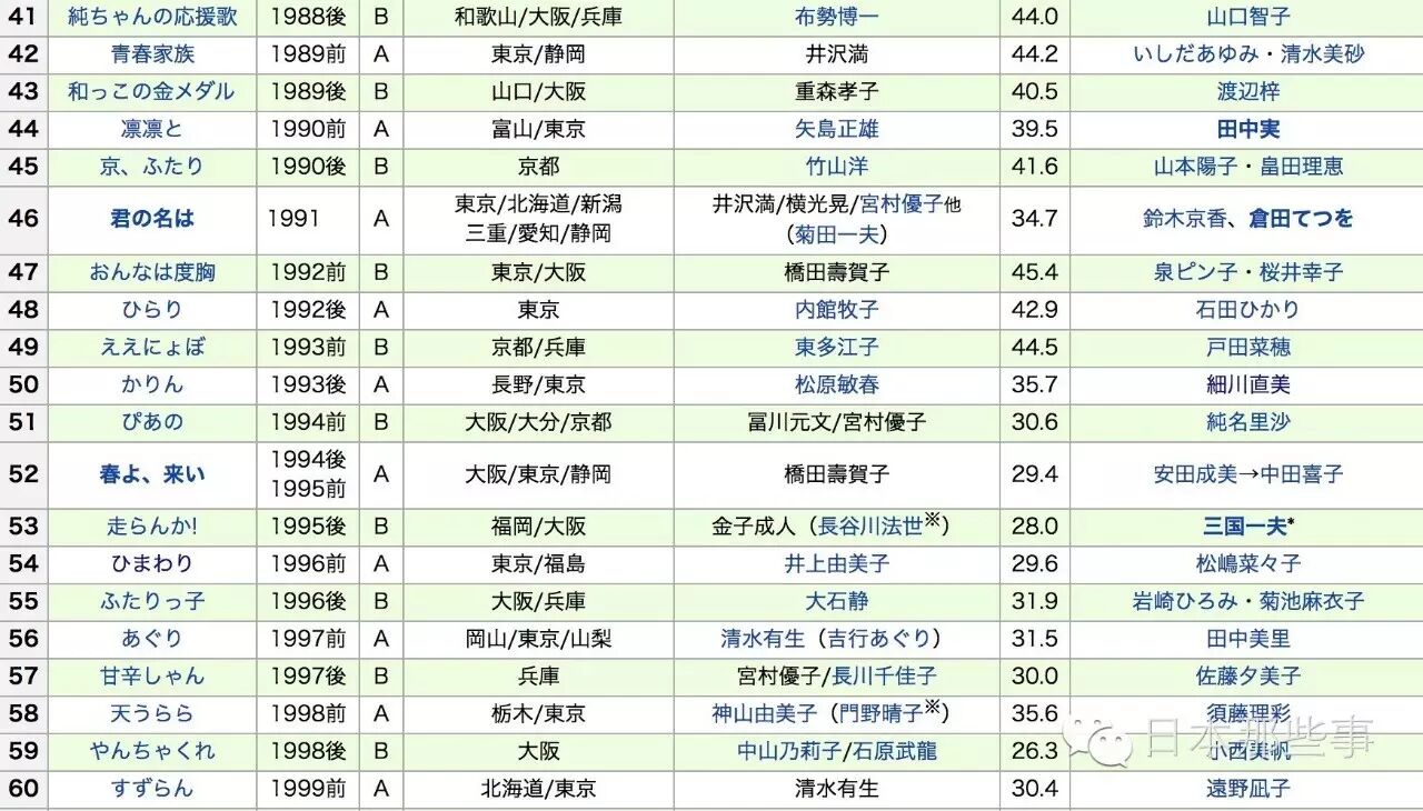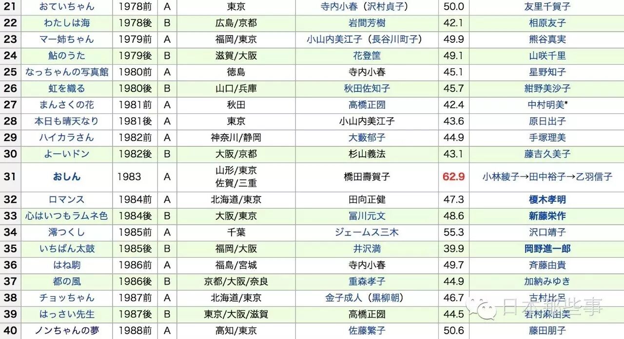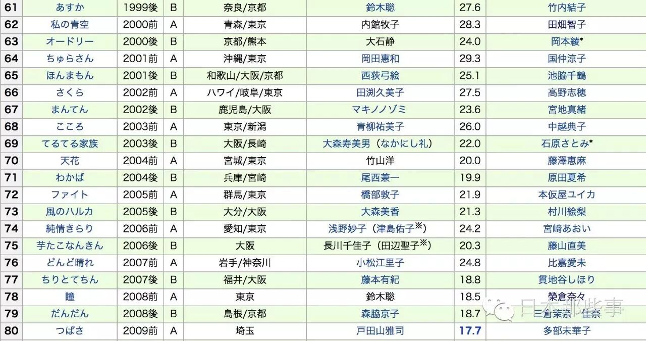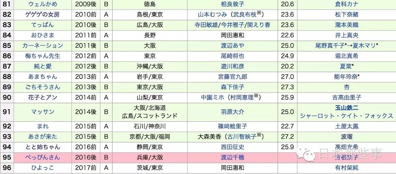 先不算17年有村架纯将要出演的晨间剧《雏鸟》,晨间剧这是播到第95部了。(下图的收视率是最高收视率)