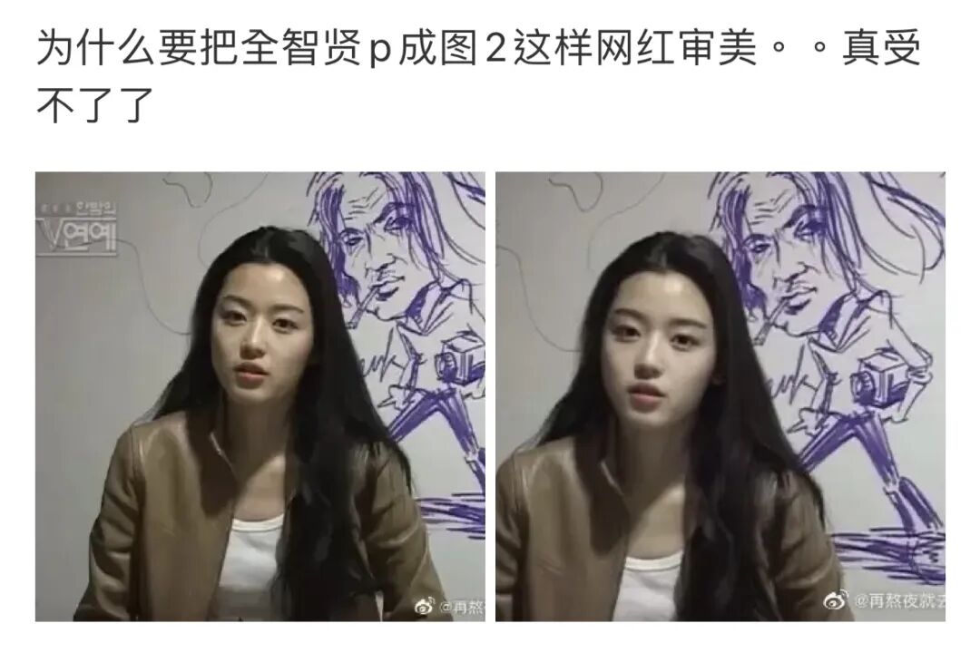 但即便是拿着一手好牌出生长大的全智贤,也逃不过网红审美P图的魔咒。