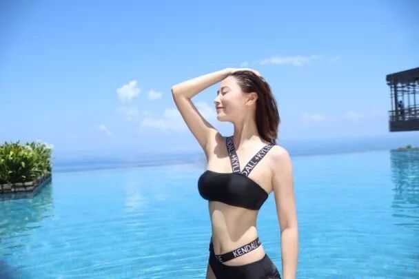 近日无线花旦朱晨丽在网上大晒索爆水着相