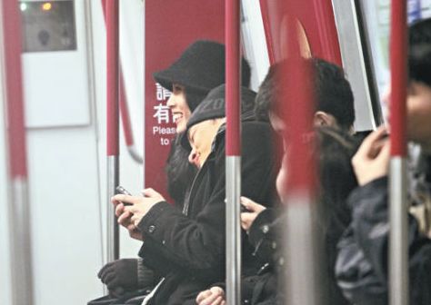 在港铁车厢内卿卿我我,宛如一对小情侣