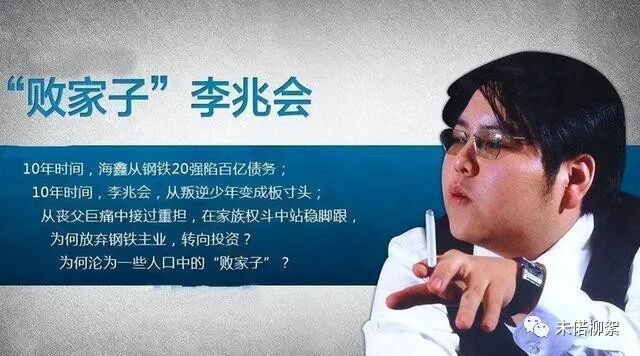 他成功用6亿人民币赚取了近27亿元的净利润,尝到甜头的李兆会加大了他投资,除了资本游戏外,李兆会还投资房地产,他对之前的钢铁产业也不太上心。可随着海鑫集团的亏损,李兆会的投资也无法填补这个亏空。海鑫集团从内到外被掏空,除了巨额的债务外,海鑫集团还被查出造假账、偷税漏税等问题,曾经纳税第一的民营企业,如今居然偷税漏税,听起来是何其的Satire. 2014年,海鑫集团终于迎来了破产的一天,李兆会的时代结合了,他再也不是那个“富二代”的榜样,不少人说他是败家子,10年败光了125亿的资产,名下的豪车飞机都被变卖抵债。
