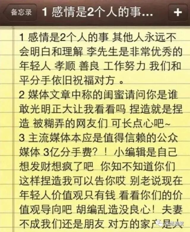 有人说车晓流产是因为过度工作,也有人说是车晓自身的身体原因,这件事之后,车晓复出积极工作,并且明确表明不要孩子。在此矛盾的激发下,车晓跟李兆会离婚,对于缠绕两人的“3亿分手费”,车晓回应说:“对方的家产是人家辛辛苦苦打下的江山,我不要!