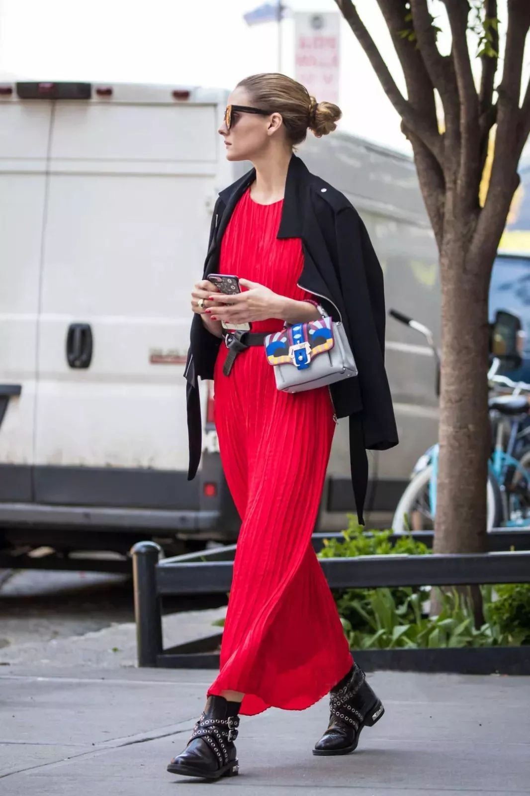 红色长裙搭配夏季度假感凉鞋或者搭配黑色风衣酷帅兼得▼▼▼