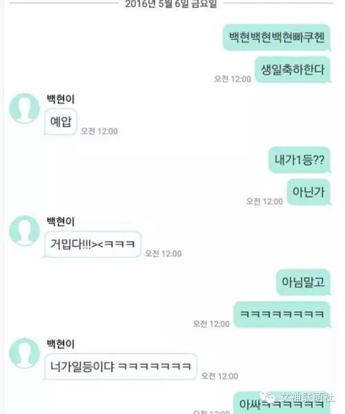 5月6日凌晨灿烈在Instagram放上了自己和伯贤的对话纪录: