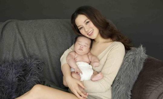 她还公布家庭照,她抱着小儿子坐在公公、老公中间,明艳照人不像刚生完小孩,还有一张宝宝戴帽托腮坐在小桶子里,可爱爆表。