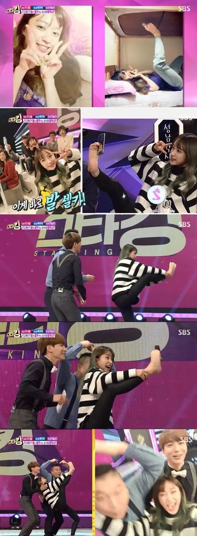 此外,hani还有一个蜜汁个人技——用脚自拍,EXID刚在泡菜大火的时候,每次上节目她都要展示一下这个特别的技能...一言不合就脱鞋...