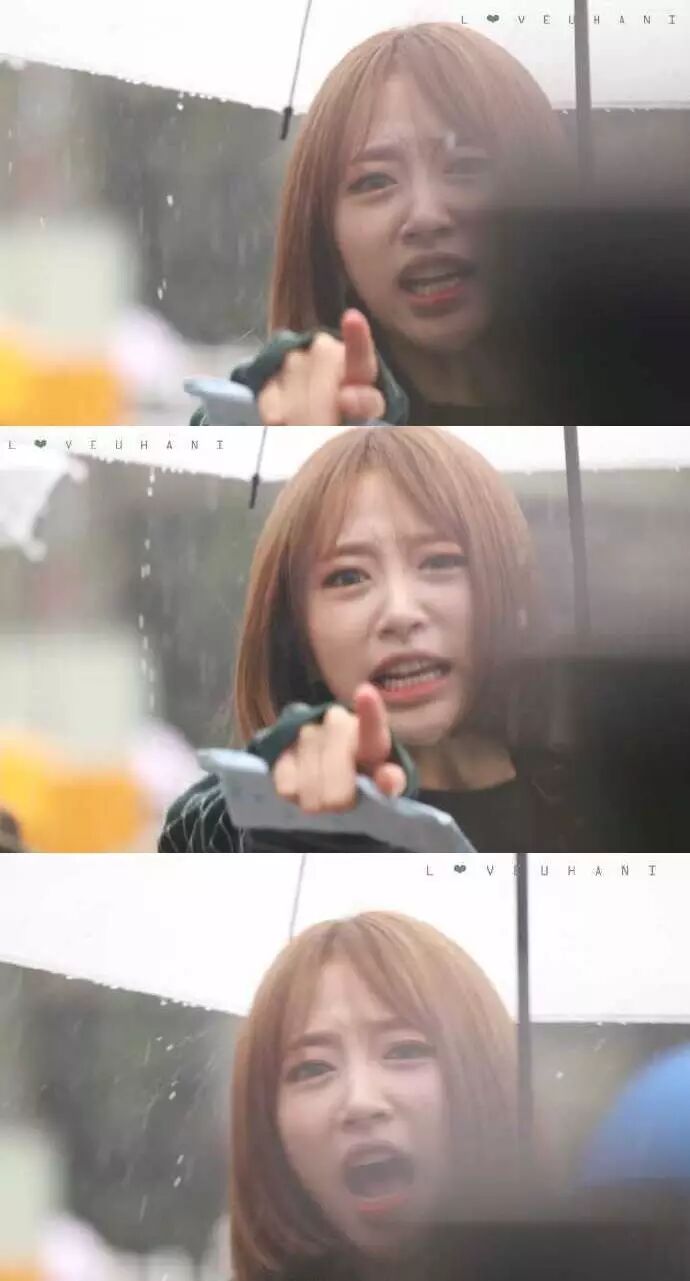 这张照片是不是宛如电视剧的剧照!其实这个时候的hani正巧看到了在电视台外守候自己却没有撑伞的粉丝~