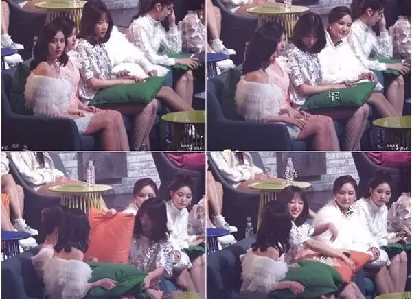 在前段时间的MBC歌谣大祭典上,女子组合TWICE的两名日本成员因为裙子短,一直很不安的用手遮住腿,这一幕恰巧被wuli hani欧巴看见了