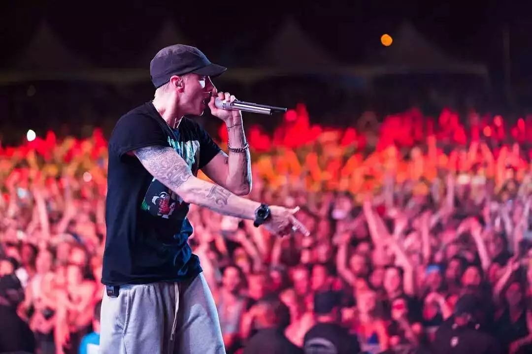 在蕾哈娜略显疲态的部分完结后,背后的大屏冒出无数烈焰,一道门开启, Eminem出来,一开口,当年的愤怒如刀光剑影,下面的人高举双手,迎接着这个帝王的重生。