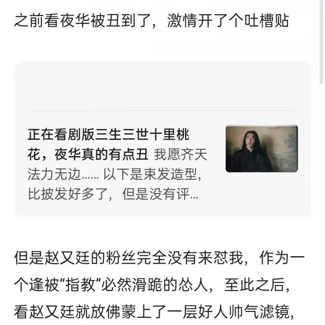 有网友称当初自己吐槽夜华丑,却没有被粉丝围攻怒怼,从此对他多了一层好人滤镜。