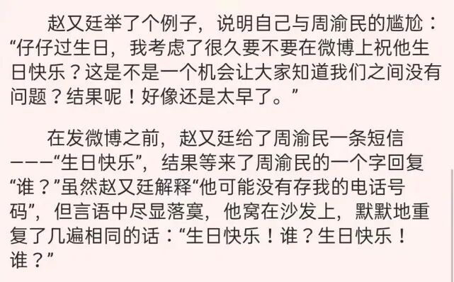 过后,赵又廷在接受采访时,表示得奖之后的那段时间,是自己最不快乐的时候。他曾在周渝民生日时给对方发短信祝福,但对方的回复却是“谁?”