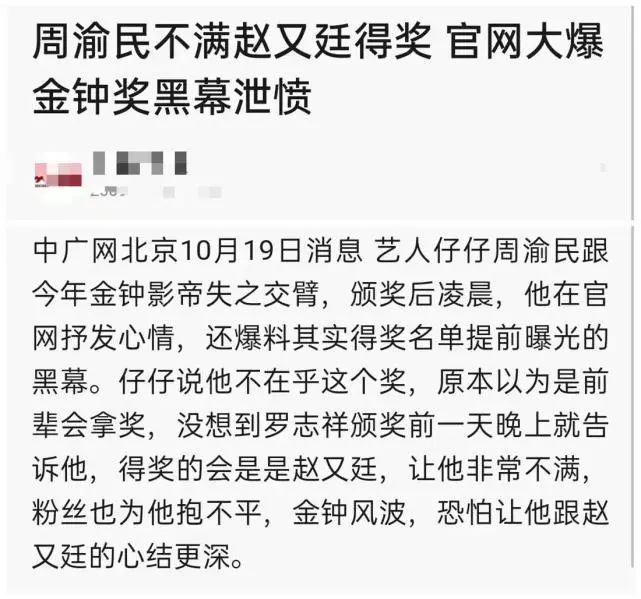 事后,周渝民在官网发文,直指奖项存在黑幕。随着粉丝替他鸣不平下场,一场得奖风波愈演愈烈。