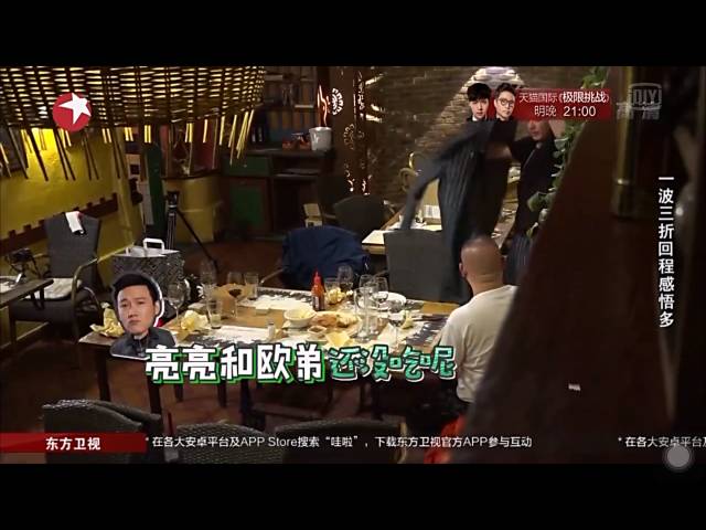 在节目最后欧弟贾乃亮漂泊回到酒店后陆毅第一个出来迎接,并告诉他们打包回来的食物在哪!