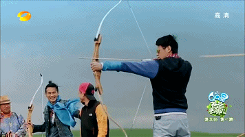 陆毅2014年参加《爸爸去哪儿2》射箭,正中靶心,天下第一箭的技能让杨威都不淡定了。