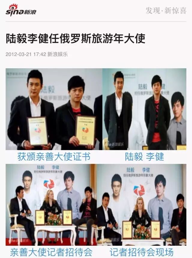 而且在2012年陆毅就和李健作为俄罗斯旅游年形象大使!