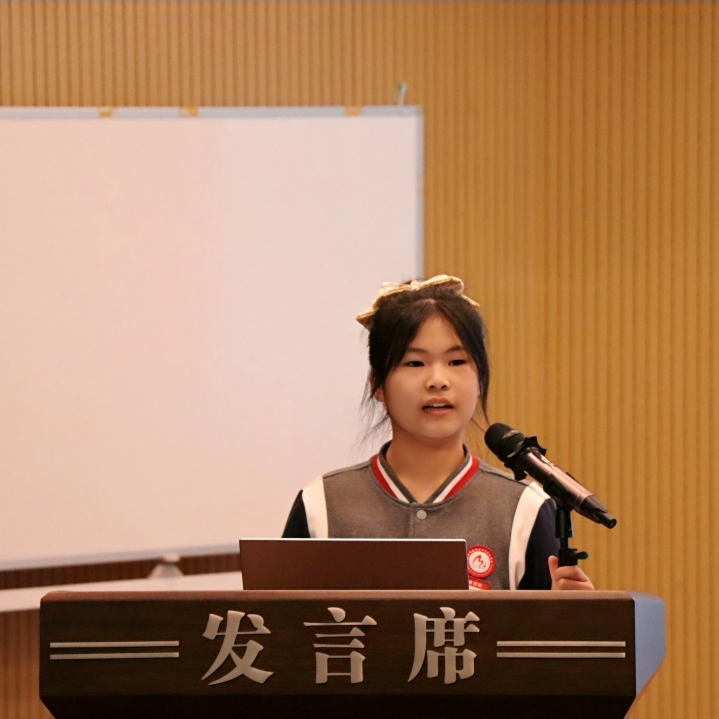 压轴出场的是来自八(3)班的骆语涵,她带来的主题是“律与立”。一件事的先后顺序是很重要的,有些事情要是顺序错了,很可能就完成不了。所以,骆语涵同学建议同学们要先律再立。但是有些话不能只是说说,而是要一步一个脚印去为之努力,也要在日常生活中增强规矩意识,先行他律,再行自律。那我们如何自立呢?自立并不是一味去否定他人,我行我素,而要虚心接受好的意见。在最后,骆语涵同学将自己平时收集的座右铭分享给同学们,同学们也颇有感触。