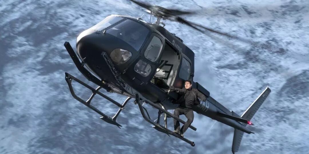 图:阿汤哥在电影中,攀挂在直升机的镜头,是他亲身完成