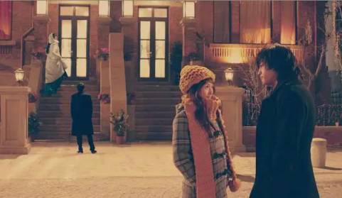 电视剧《金粉世家》中董洁和陈坤在天津北站天桥上。