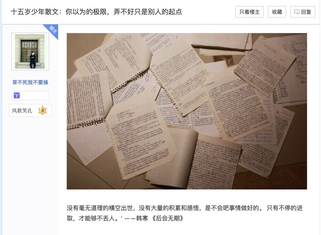 曾有位 15 岁的少年在新概念作文吧直播自己写作,活跃了三年。