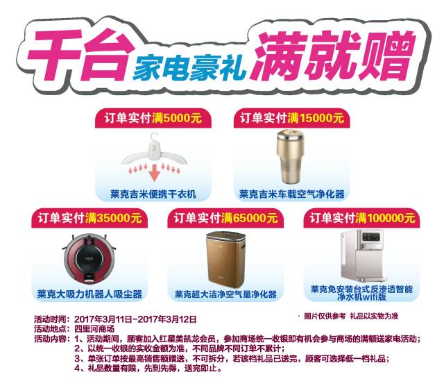 莱克吉米便携干衣机、空气净化器、机器人吸尘器、反渗透净水机,千台家电豪礼满就赠!