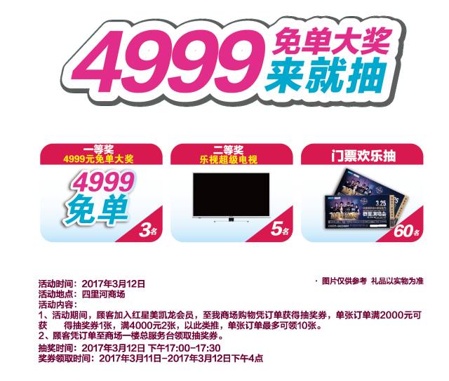 不仅有好礼各种送,还有4999免单大奖、乐视超级电视、巅峰盛典演唱会门票任性抽!