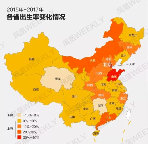 北方出生率涨幅高于南方,山东第一,其次是广东。