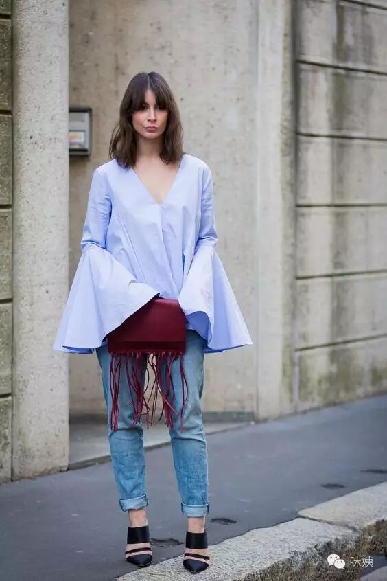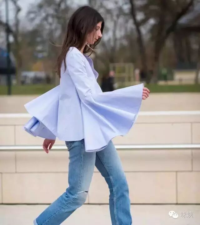 喇叭袖是衬衫界异军突起的一支队伍。袖口处大大的喇叭非常夸张,但又个性十足。