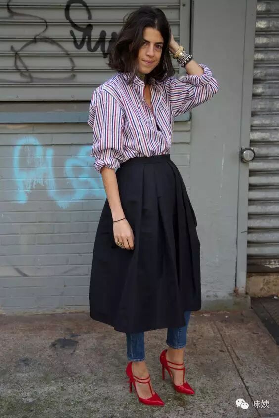 把衬衫塞到高腰下装会显高,每个姑娘都要会。